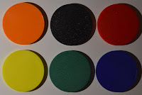 existen 6 tazos de plástico duro de diferentes colores: naranja, negro, rojo,